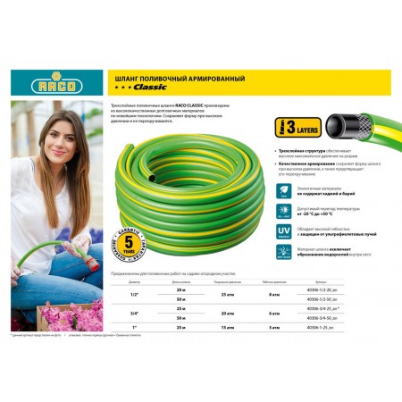 Качественное армирование шланга обеспечивает стабильность формы при высоком давлении, а также предотвращает его перекручивание,