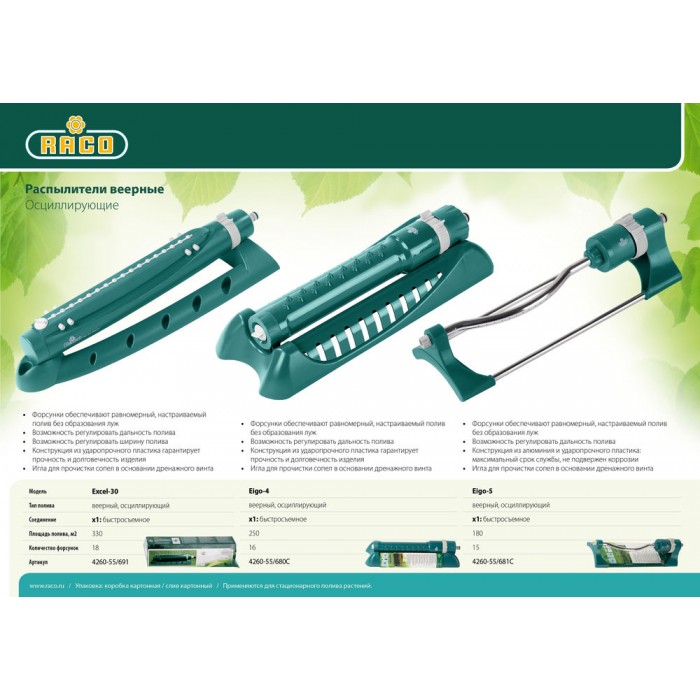 Осциллирующие распылители RACO обладают высоким уровнем качества, широкой возможностью регулировки площади полива, и встроенным фильтром. Надёжны в работе, служат долго, исключительно удобны в использовании. Обеспечивают простое и качественное подключение к поливочной системе. Снабжены специальной иглой для прочистки форсунок.