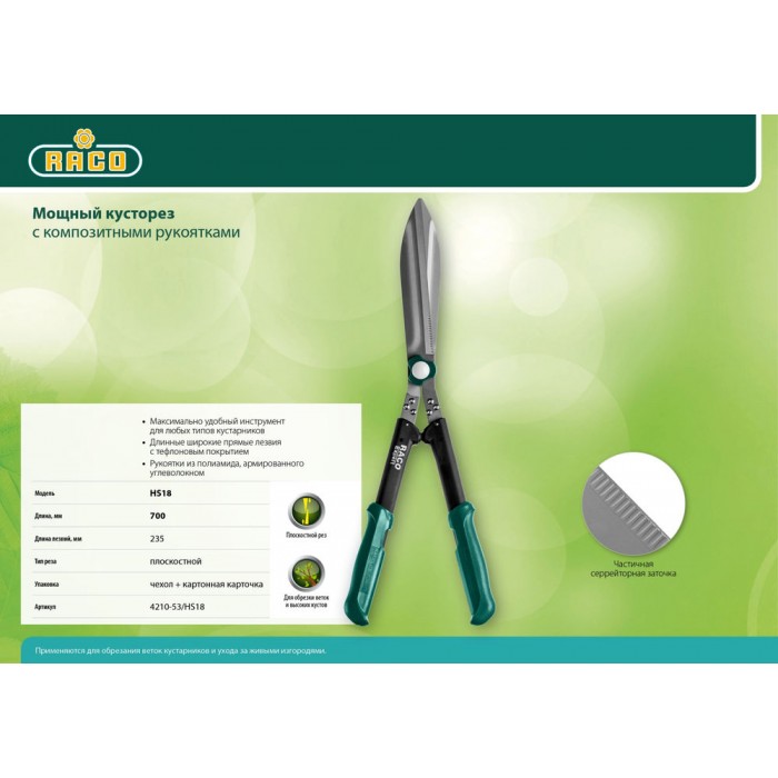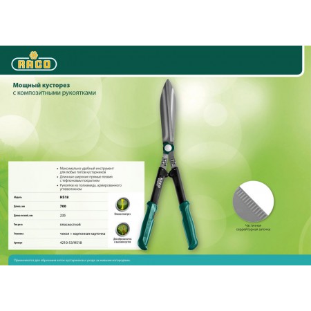 Кусторез HS18 630 мм, с широкими лезвиями, рукоятки из полиамида RACO 4210-53/HS18