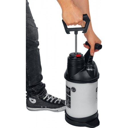 Для удобства хранения и транспортировки разбрызгиватель может быть зафиксирован в рукоятке насоса.