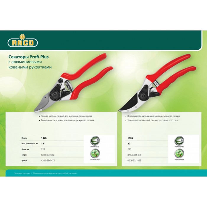 Усиленные секаторы RACO «Profi Plus» в традиционном и привлекательном дизайне для садоводов-профессионалов. Лезвия инструментов изготовлены из высококачественной нержавеющей стали, что гарантирует превосходный результат и длительный срок службы.