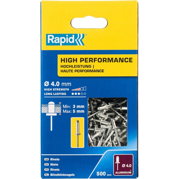 Алюминиевая высокопроизводительная заклепка R:High-performance-rivet, 4.0 х 8 мм, 500 шт RAPID 5001432
