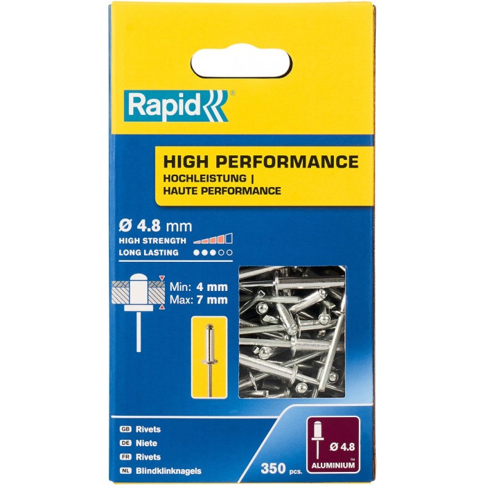 Алюминиевая высокопроизводительная заклепка R:High-performance-rivet, 4.8 х 10 мм, 350 шт RAPID 5001435