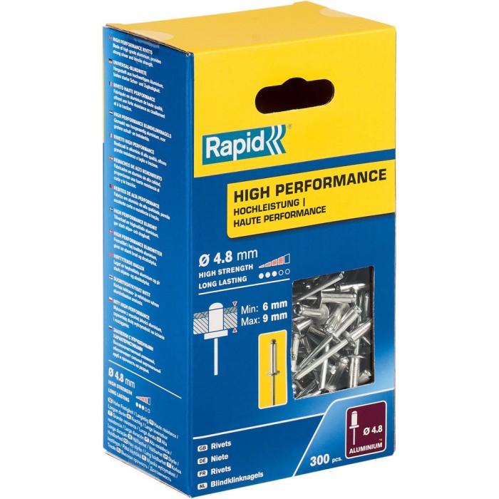 Алюминиевая высокопроизводительная заклепка R:High-performance-rivet, 4.8 х 12 мм, 300 шт RAPID 5001436