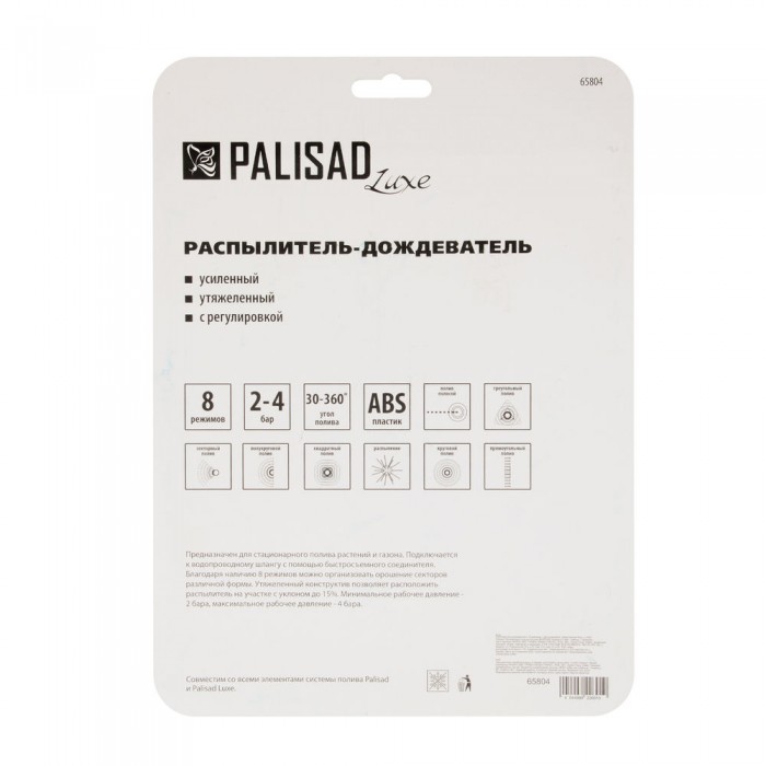 Распылитель-дождеватель, 8 режимов, с регулировкой, утяжеленная база, LUXE Palisad (65804)