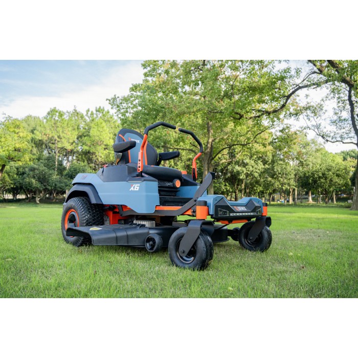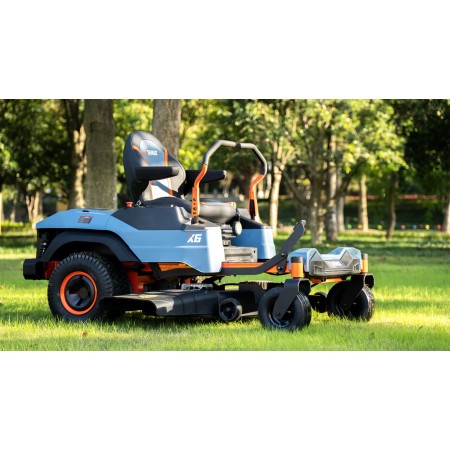 Райдер газонокосилка ZTR аккумуляторная ZTRX6-M-EU,ширина кошения 107см,два двигателя привода ноже мощностью 1,2 кВт, скорость вращения ножей: 2400 - 3000 об/мин, 15 ступеней регулировки высоты скашивания 2,5 - 11,5 см, два режима движения: ECO и TURBO. Основные функции скашивание с боковым выбросом, мульчирование. В 2025 году опционально будет доступен травосборник (приобретается отдельно в комплект поставки не входит) Независимая система привода задних колес позволеят маневрировать и разворачиваться с 0 градусом разворота.