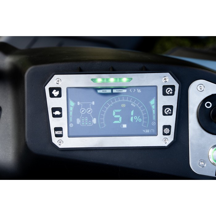 Обрабатываемая площадь до 8000 м2 на одном заряде из 6 батарей Х60 60V 12Ач. Система SENIX SMART CONTROL включает в себя ЖК-дисплей отражающий основную информацию о заряде батареи , частоте вращения ножей, режиме движения. Позволяет через BLUETOOTH соединяться с приложением SENIX и отражать все параметры на экране вашего смартфона.