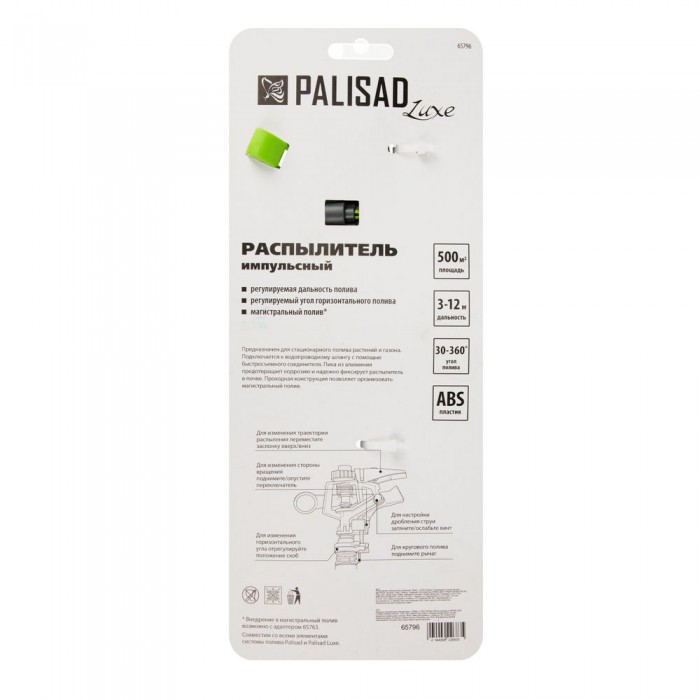 Разбрызгиватель усиленный, импульсный, с регулировкой угла горизонт распыления до 39 м Palisad (65796)