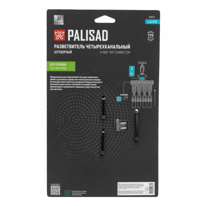 Разветвитель четырехканальный, с внутренней резьбой 3/4", алюминий, LUXE Palisad (65833)