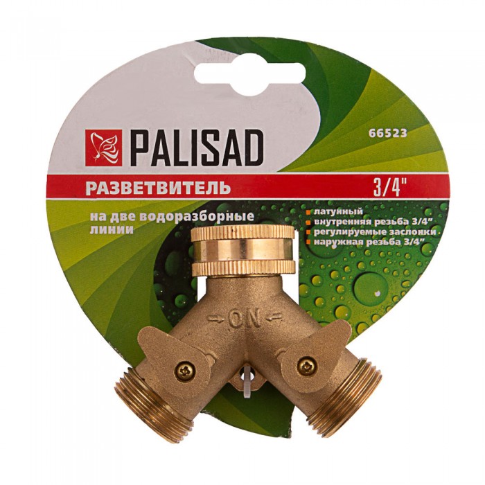 Разветвитель двухканальный, регулируемый, внешняя и внутренняя резьба 3/4, латунный Palisad (66523)