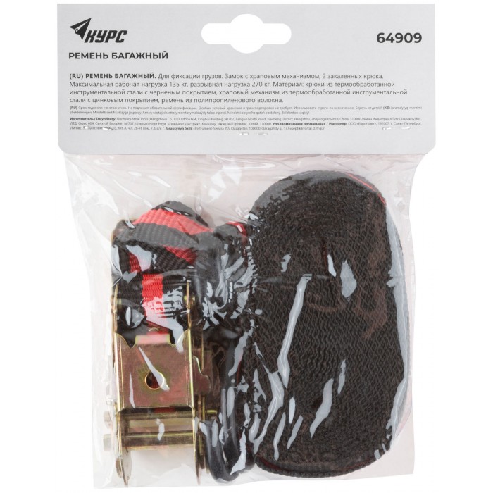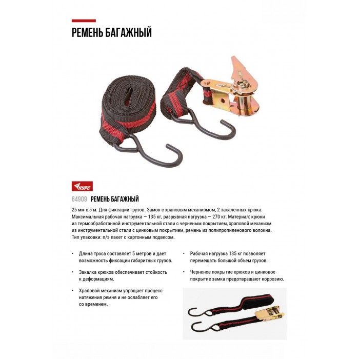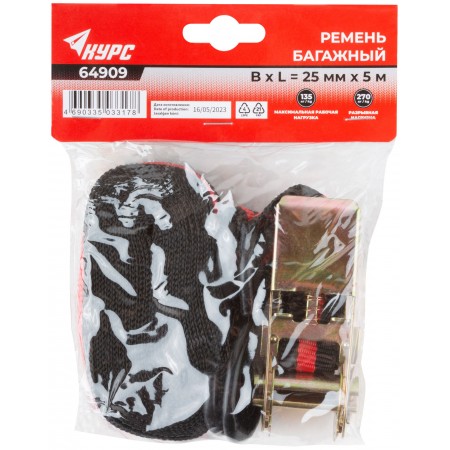 Ремень багажный с замком 25 мм х 5 м, 135 кг (64909)