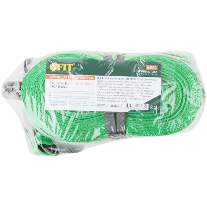 Ремень для крепления груза, храповый механизм 230 мм, полиэфирная лента 50 мм x 12 м, 5000 / 10000 кг (64930)