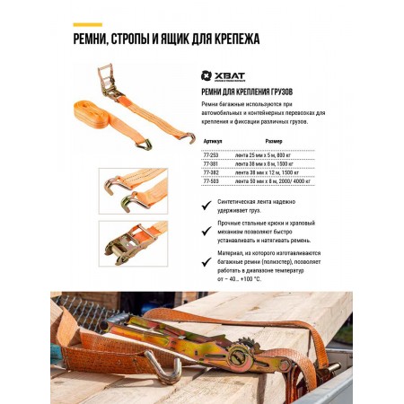 Ремень для крепления груза, храповый механизм, лента 38 мм х 8 м, 1500 кг (77-381)