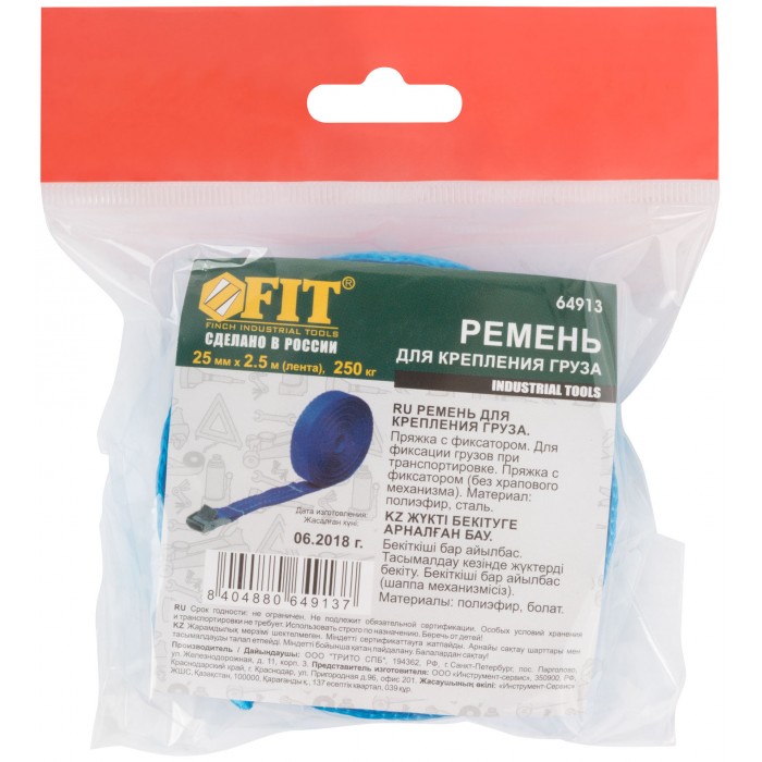 Для фиксации грузов при транспортировке. Пряжка с фиксатором (без храпового механизма) Материал: полиэстер, инструментальная сталь. Упаковка : термоусадочная пленка.