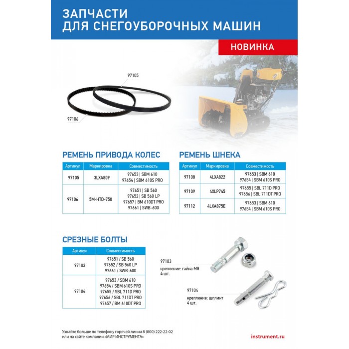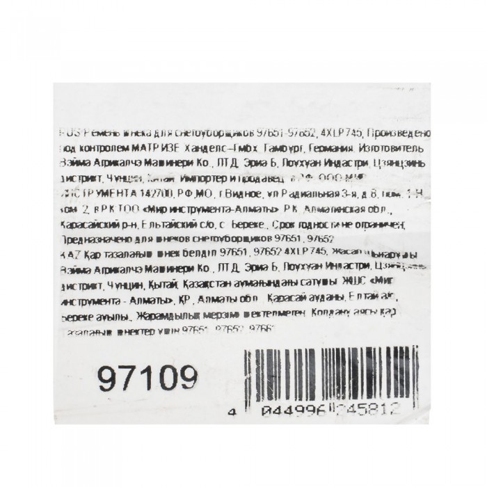 Ремень шнека для снегоуборщиков 97651-97652, 4XLP745 (97109)