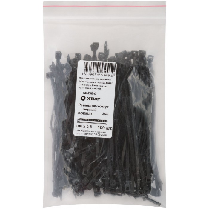 Ремешок-хомут нейлоновый черный Профи JSS, 100 шт. 100х2,5 мм (60430-0)