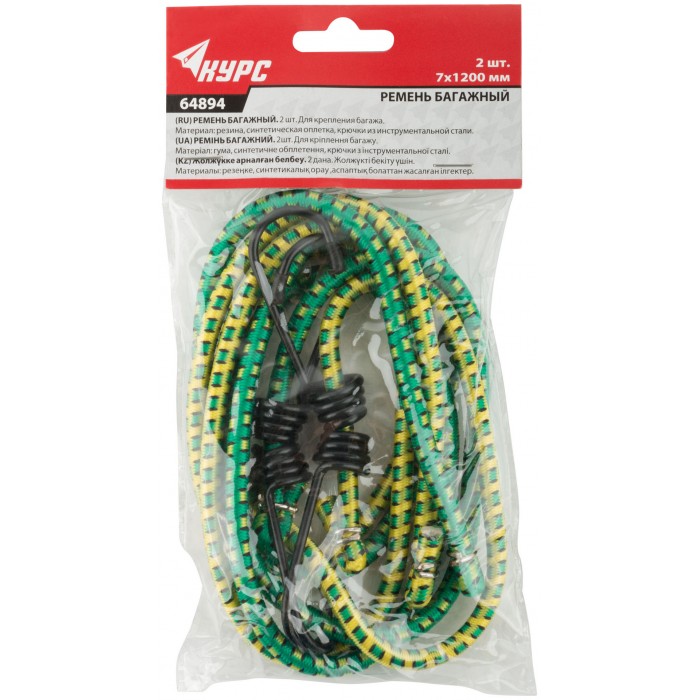 Ремни багажные резиновые, стальные крючки, 2 шт., 7х1200 мм (64894)