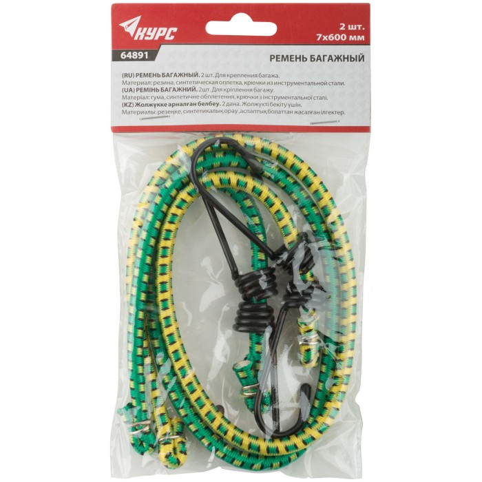 Ремни багажные резиновые, стальные крючки, 2 шт., 7х600 мм (64891)