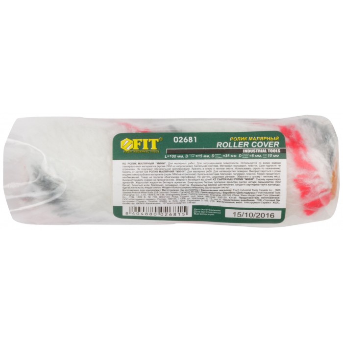 Ролик полиакрил. "мини" Профи, белый с серой и красной полосками, диам.15/35 мм, ворс 10 мм, 100 мм (02681)