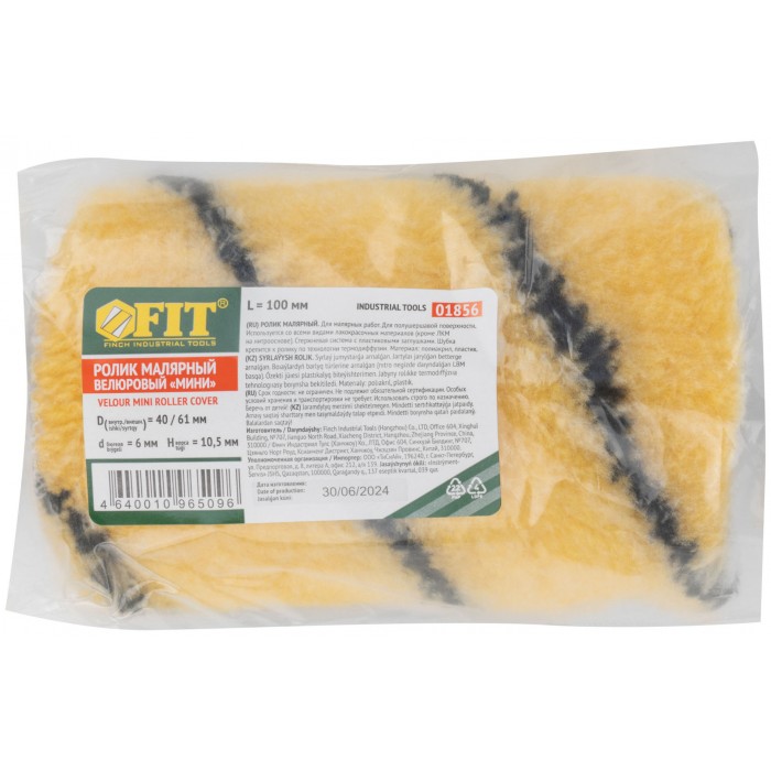 Ролик полиакриловый, бежевый с черной полоской, диам. 40/61 мм; ворс 10,4 мм, 100 мм (01856)