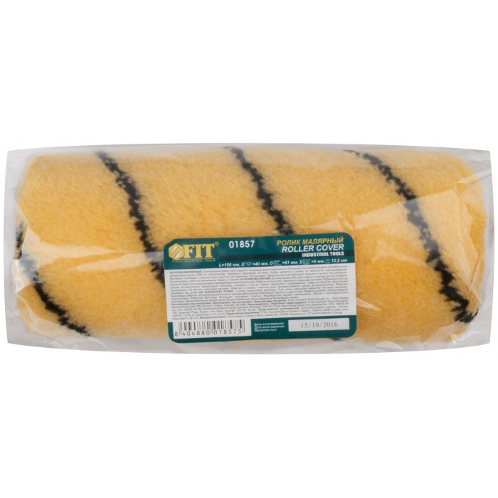 Ролик полиакриловый, бежевый с черной полоской, диам. 40/61 мм; ворс 10,4 мм, 150 мм (01857)