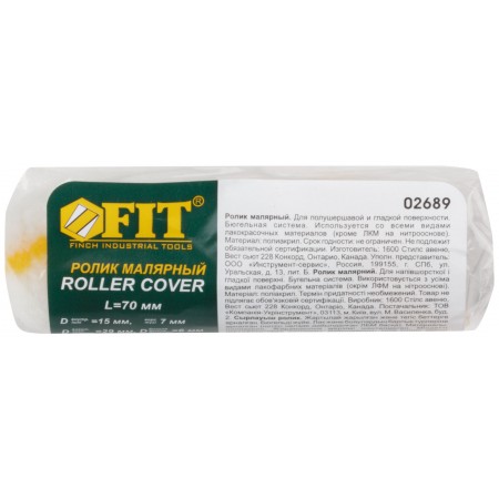 D 15/29 мм, ворс 7 мм. Система с пластиковым роликом. Используется со всеми видами ЛКМ (кроме нитролаков). Для полушершавой и гладкой поверхности. Для валиков арт. 02685, 02686, 02687.
