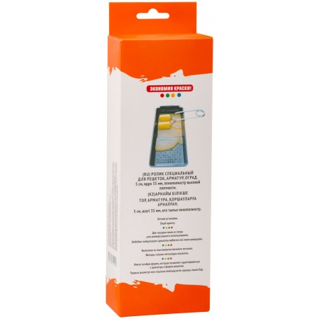 Ролик специальный для решеток, арматур, оград, 50 мм (2 шт.), ядро 35 мм, пенополиэстер высокой плотности. Ручка двойная, 22 см. Удобная и быстрая покраска. Возможна замена насадок 50 мм. Двойной подвижный станок для валика + 2 валика мелкопористые.
