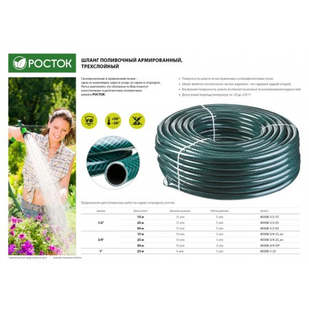 Шланги РОСТОК изготовлены из износоустойчивого и нетоксичного ПВХ. Хорошо заметны на приусадебном участке, благодаря яркому цвету. Гибкие, прочные и долговечные.