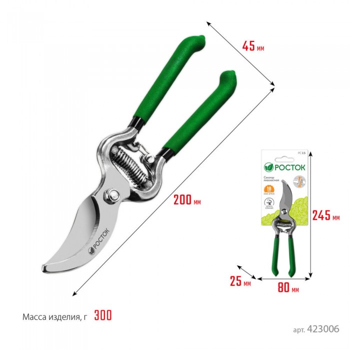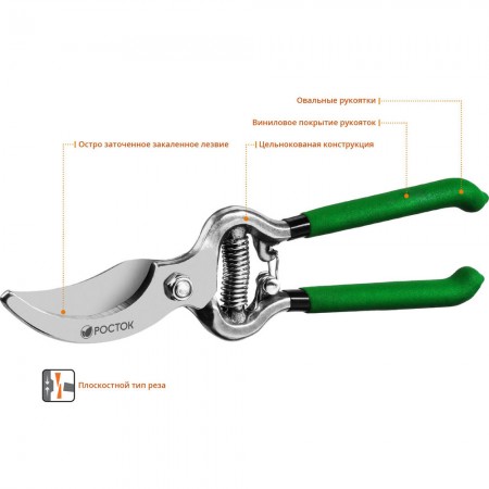 Все секаторы РОСТОК произведены на высокоточном оборудовании из качественных материалов, что гарантирует чистый рез и продолжительный срок службы.0