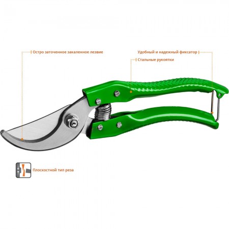 Плоскостной секатор 200 мм, углеродистая сталь, закаленные лезвия, стальные эргономичные рукоятки РОСТОК PC-25 423009