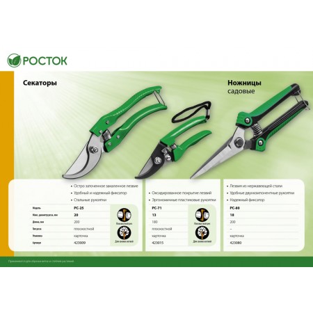 Все секаторы РОСТОК произведены на высокоточном оборудовании из качественных материалов, что гарантирует чистый рез и продолжительный срок службы.0