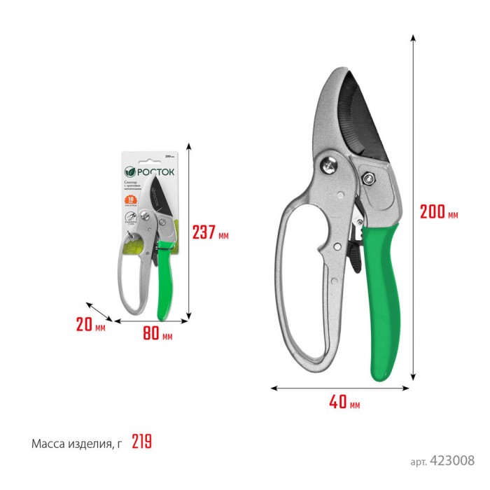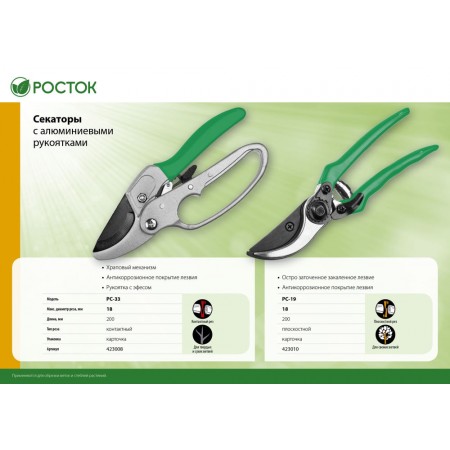 Все секаторы РОСТОК произведены на высокоточном оборудовании из качественных материалов, что гарантирует чистый рез и продолжительный срок службы.0