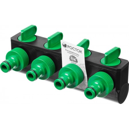 Применяется для одновременного подключения четырех водозаборных линий к водопроводной трубе или крану с внешней резьбой 3/4″.