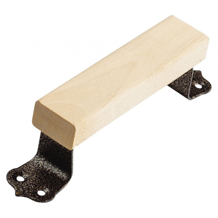 Ручка - скоба металлическая, с деревянными накладками. Предназначена для установки на внутренние и внешние двери. Материал: инструментальная сталь, дерево. Упаковка: п/э пакет.