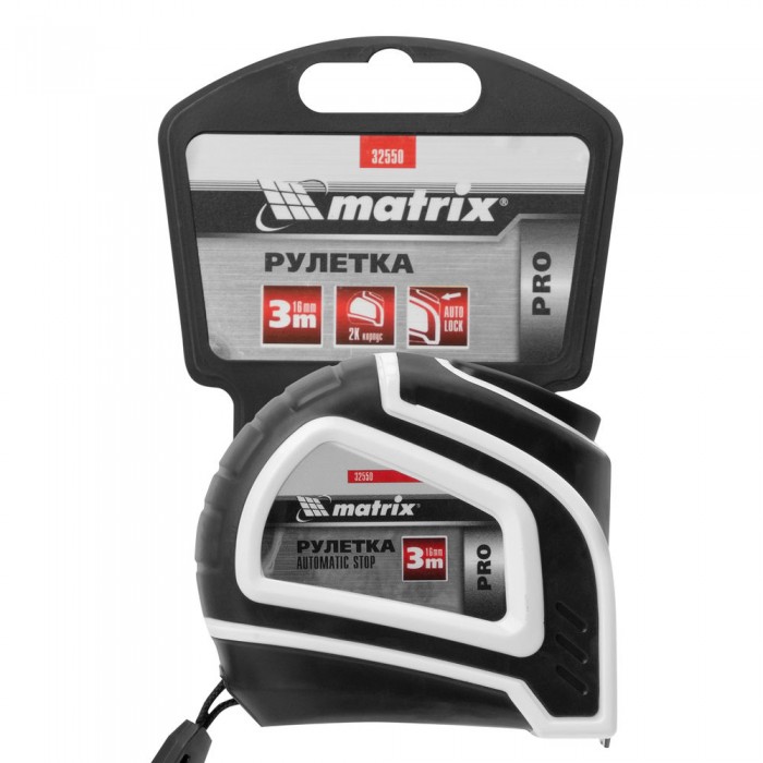 Рулетка Autostop,3 м х 16 мм,двухкомпонентный корпус,автоматическая фиксация,Pro Matrix