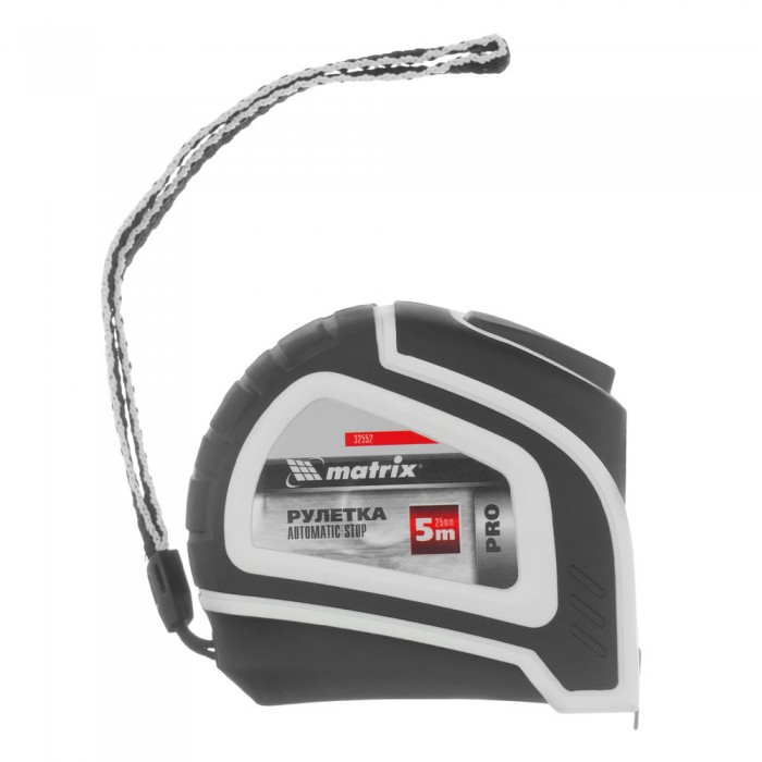 Рулетка Autostop,5 м х 25 мм,двухкомпонентный корпус,автоматическая фиксация,Pro Matrix