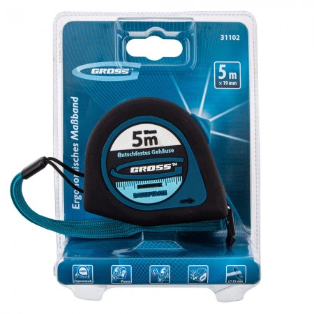 Рулетка "Ergonomisch",5 м x 19 мм,магнитный обрезиненный зацеп Gross