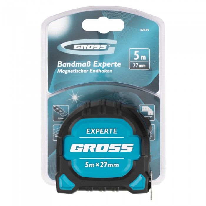 Рулетка Experte,5 м x 27 мм,двухкомпонентный корпус,магнит,двухсторонняя разметка,нейлон Gross