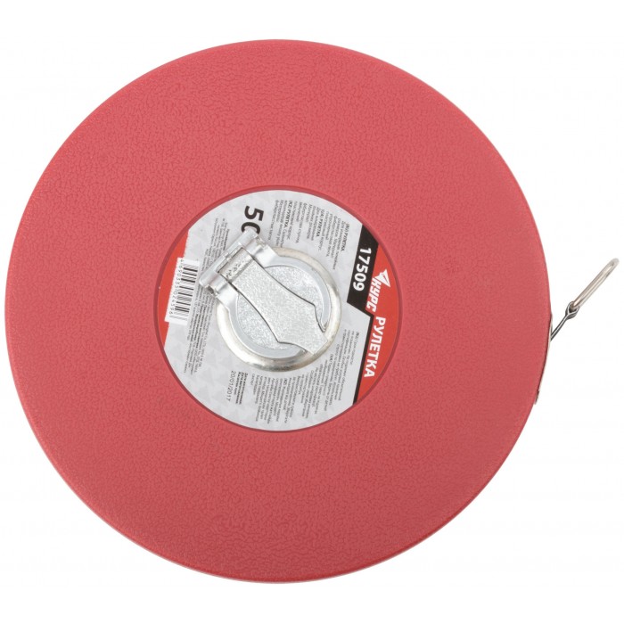 Рулетка, фибергласовая лента, красный пластиковый корпус 50 м