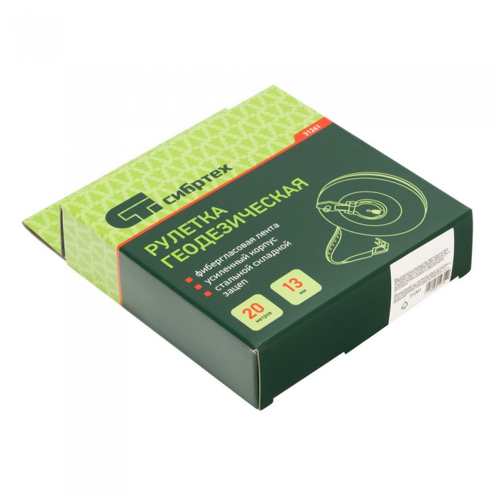 Рулетка геодезическая 20 м х 13 мм, закрытый корпус, фибергласовая лента Сибртех