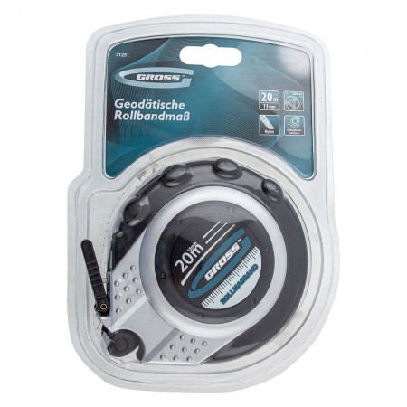 Рулетка геодезическая 20 м х 13 мм, закрытый корпус, металлическая лента, нейлон Gross