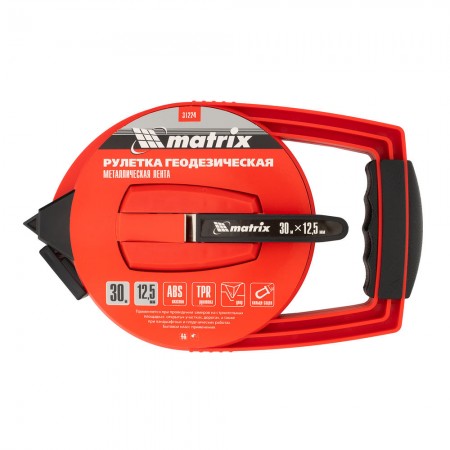 Рулетка геодезическая, 30 м х 12,5 мм, металлическая лента, закрытый корпус Matrix