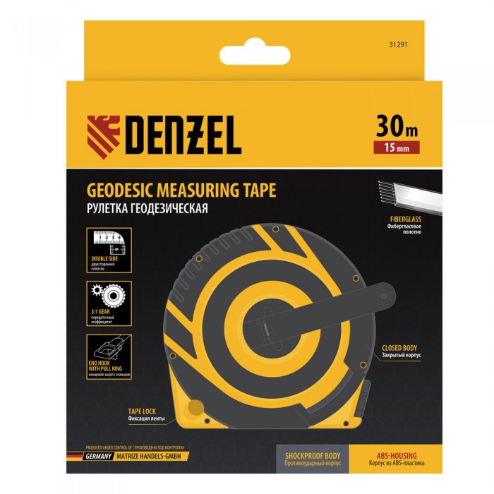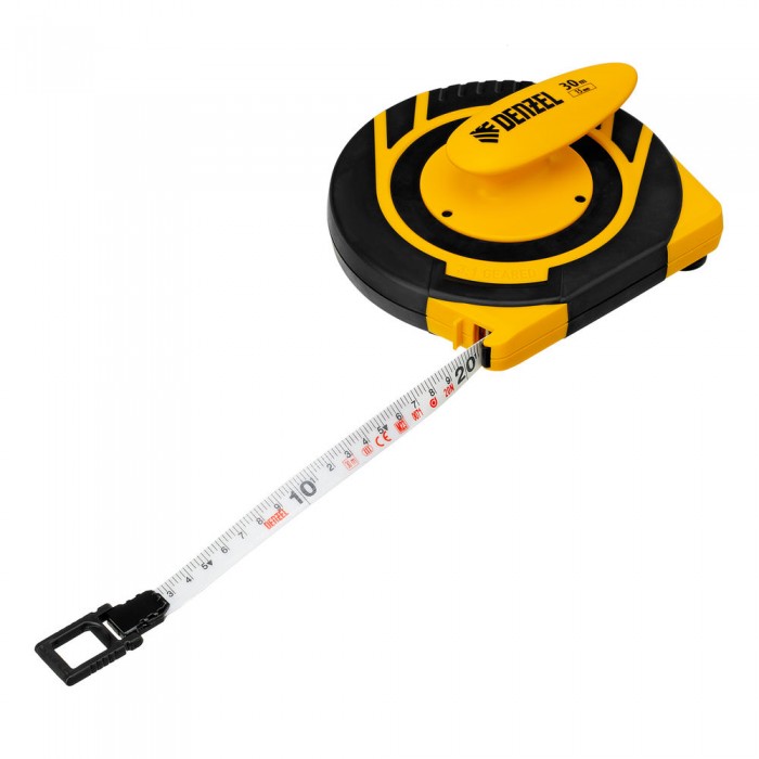 Рулетка геодезическая 30 м х 15 мм, закрытый корпус, фиберглассовая лента Denzel