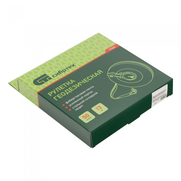 Рулетка геодезическая 50 м х 13 мм, закрытый корпус, фибергласовая лента Сибртех