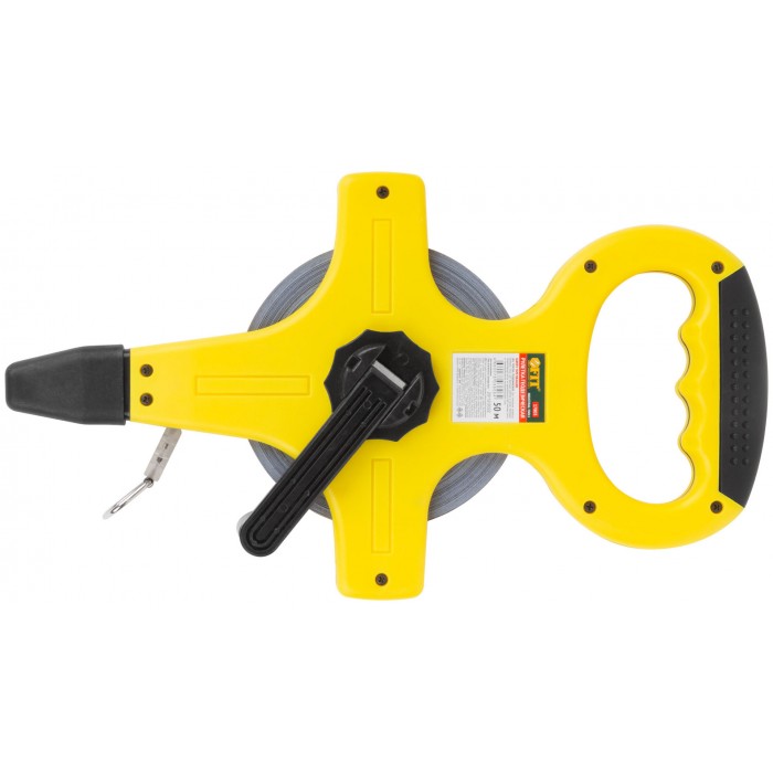 Рулетка геодезическая, стальная лента, желтый открытый пластиковый корпус, прорезиненная ручка 50 м