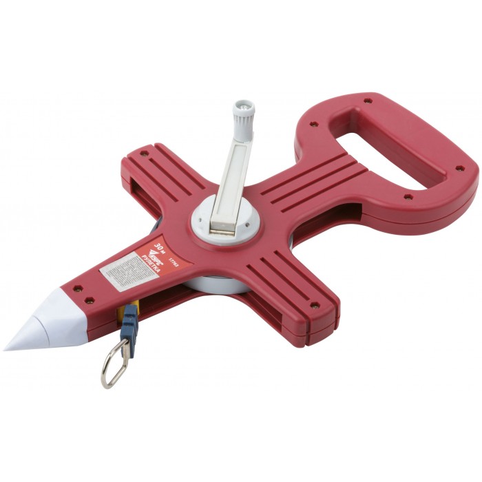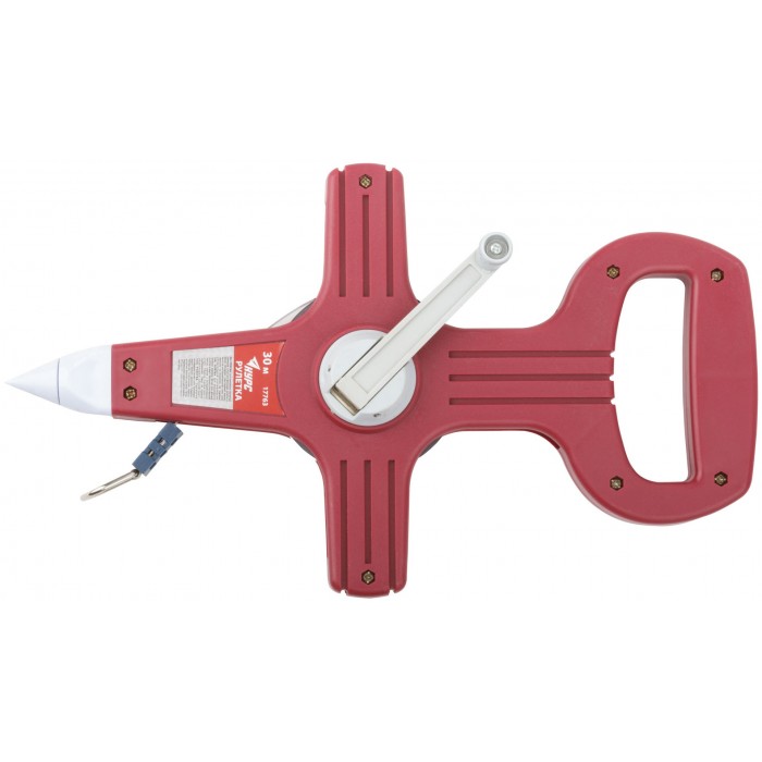 Со штыком для фиксации рулетки в земле при измерении больших длин. Материал: стальная лента, пластиковый корпус.