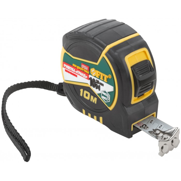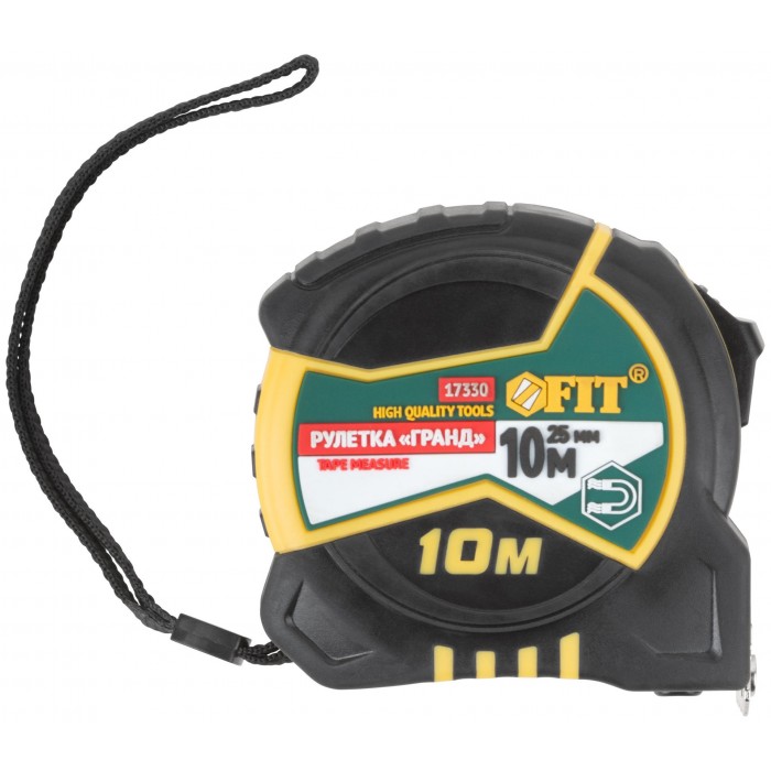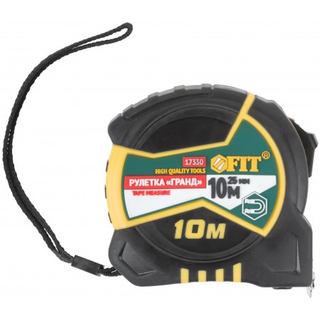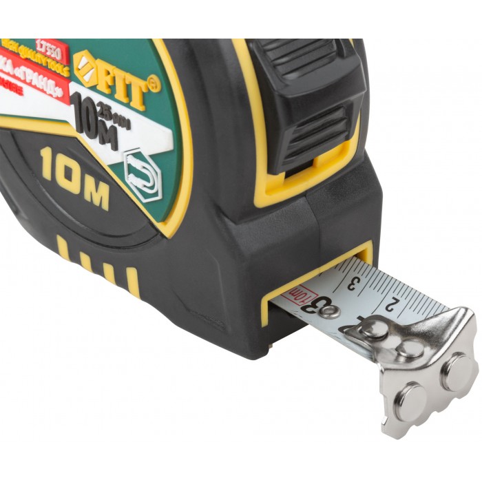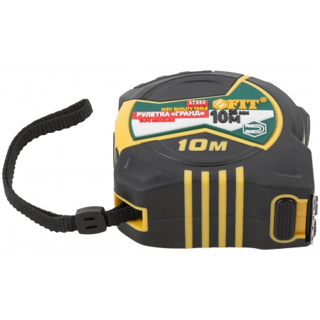 Рулетка "Гранд", калибр.лента, нейлон.покр., магн.крючок, двойной стопор, прорезин.корпус 10 м х 25 мм