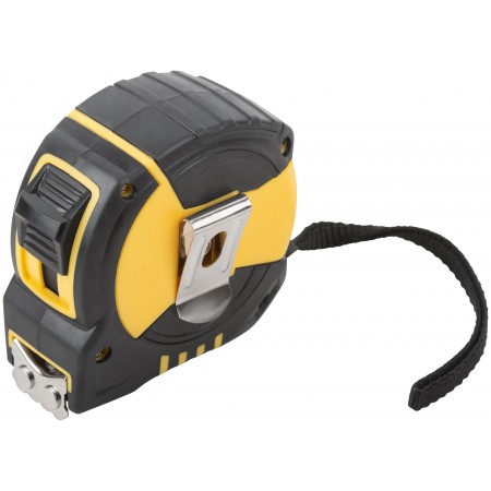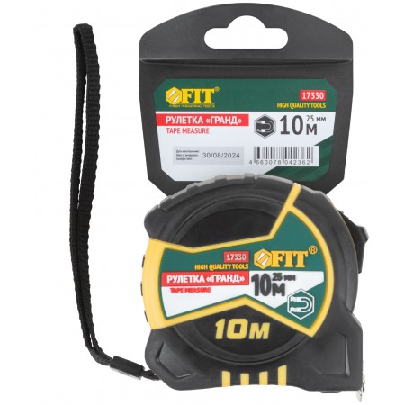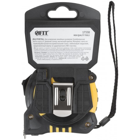 «Гранд». Калиброванная лента класс II, двойной стопор, магнитный крючок. Материал: стальная лента с нейлоновым покрытием, прорезиненный корпус из ударопрочного ABS пластика. Упаковка: пластиковый подвес.