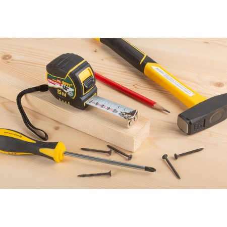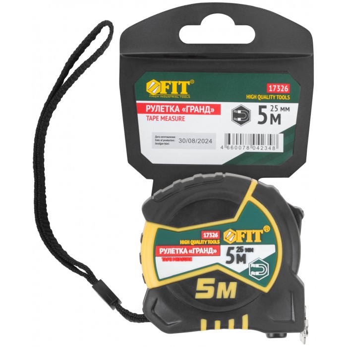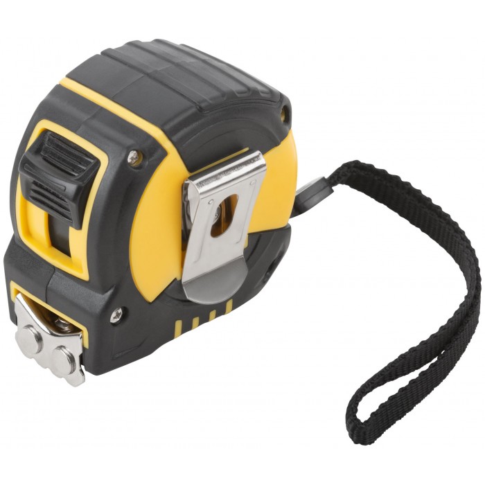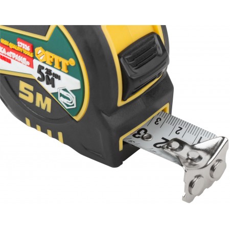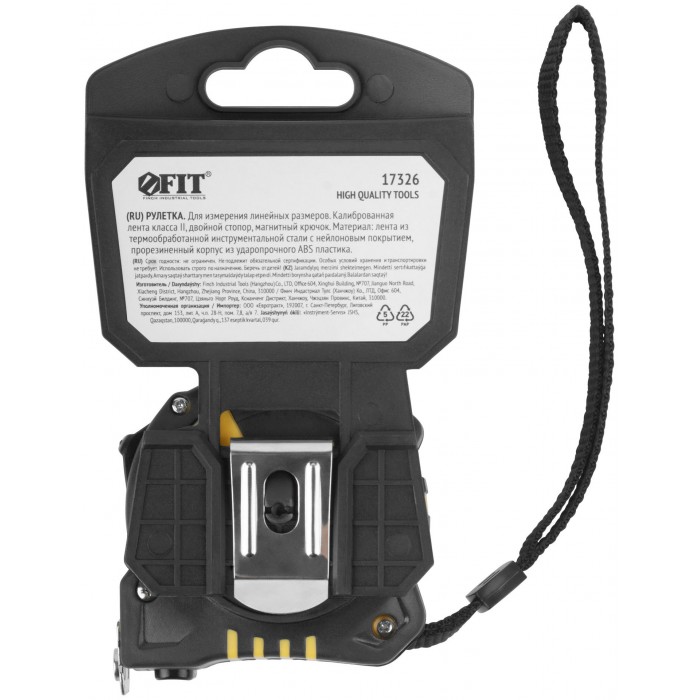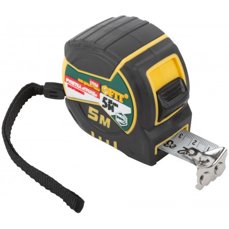 «Гранд». Калиброванная лента класс II, двойной стопор, магнитный крючок. Материал: стальная лента с нейлоновым покрытием, прорезиненный корпус из ударопрочного ABS пластика. Упаковка: пластиковый подвес.