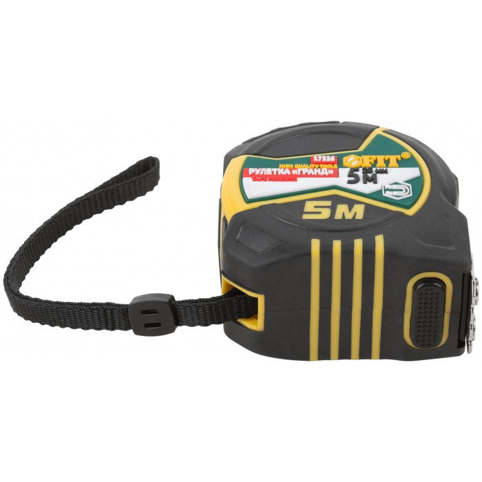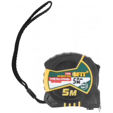 Рулетка "Гранд", калибр.лента, нейлон.покр., магн.крючок, двойной стопор, прорезин.корпус 5 м х 25 мм